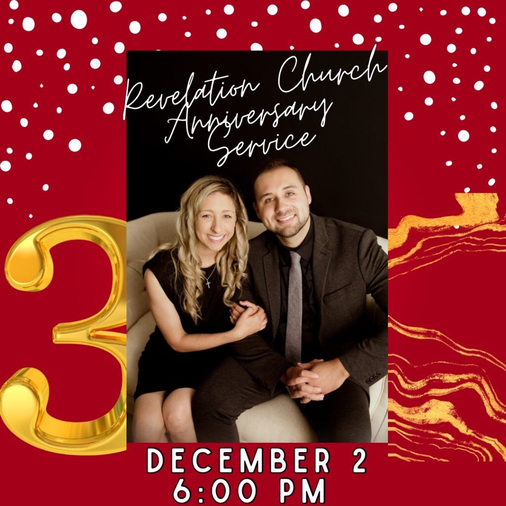 Join us in celebrating the 3 year Anniversary of Revelation Church on Saturday, Dec 2nd at 6:00 pm. They will have Apostle BJ Riley as their guest speaker! You won’t want to miss it!